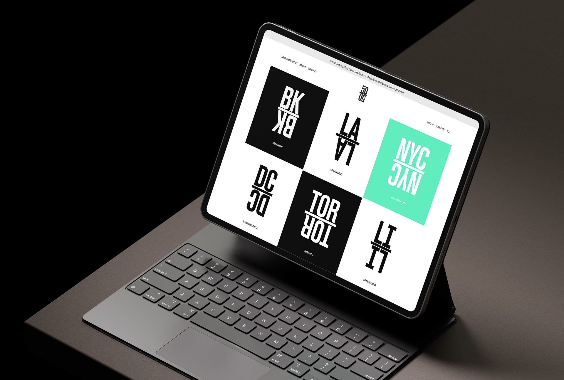 A give-back brand, 50|50 reinvests 50% of profits of every purchase back into the community. Designed branding, website and packaging.
